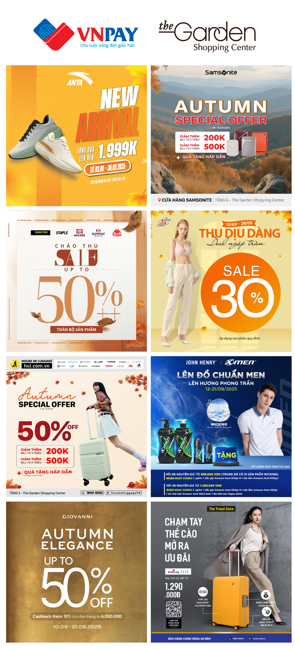 Địa điểm áp dụng: Trung tâm thương mại The Garden Shopping Center